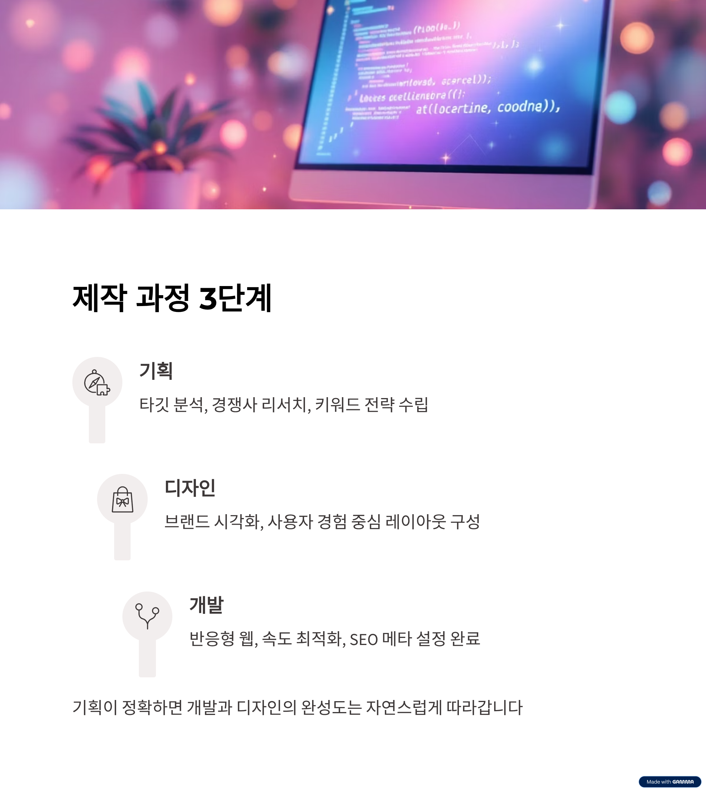 방향성을 명확히 하는 기획 과정이 탄탄할수록 완성도가 높아집니다.